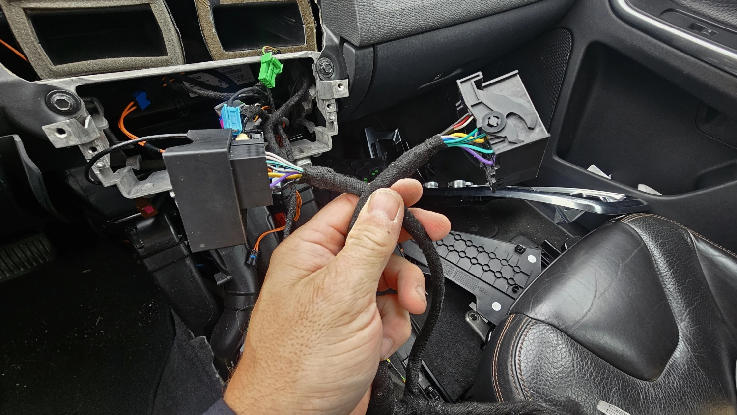 För att ens kunna montera IHU adapterkablaget krävs det att man bygger om adaptern rejält. Själva adaptern kablage är alldeles för kort för att kunna monteras i V70/S80/XC60, Det går inte att få in IHU igen på grund av adaptern. Jag började med att plocka bort alla onödiga kablar. Det är bara jämföra antalet kablar i originalkontakten i bilen, på så vis kan man eliminera väldigt mycket rent platsmässigt. Sen måste den förlängas så IHU adaptern blir minst 2 decimeter längre totalt, för då kan man stuva undan själva kontakten. Min IHU adapter krympte från 44 kablar till 10 kablar.