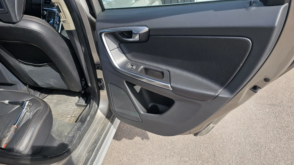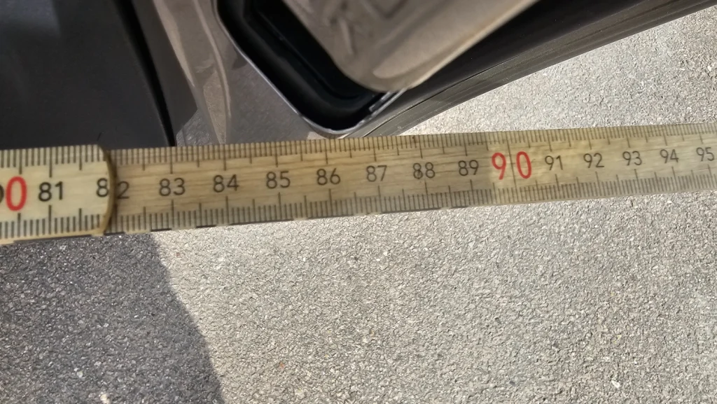 Från början har vi ett öppnings mått på 102 centimeter räknat från kanten på dörrlåset till mitten av karossens låsbygel(exempelbilden här nedan på en SPA XC60, men funktionen är den samma). När båda brickorna är monterade får vi ett mått på 105.3 centimeter istället. Det blir 3.3 centimeter vidare öppning fram. Coolt!